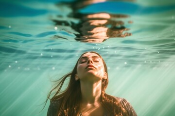 Underwater sunlight rays illuminate smooth pebbles on riverbed beneath crystal clear turquoise water surface nature tranquility.