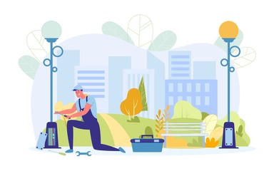 Housing Bureau Worker Fixing Street Lamp Wiring.