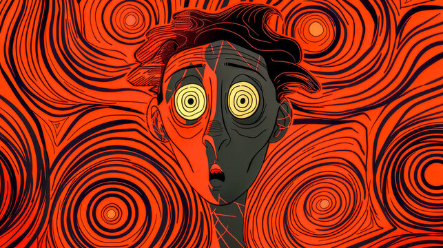 Man experiencing vertigo dizziness and anxiety with swirling red background