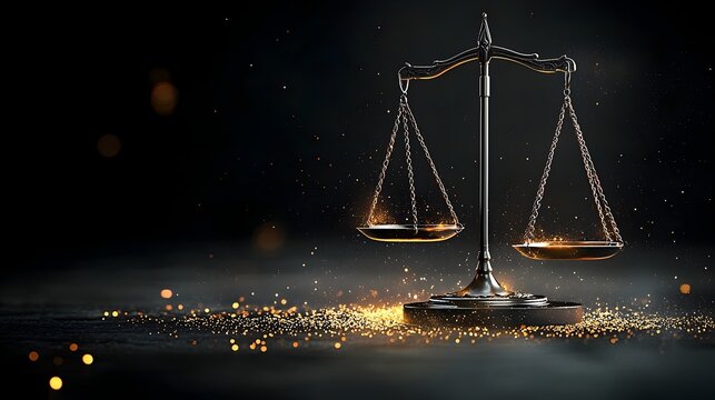 A glowing mesh balance scale its delicate equilibrium disrupted tilted to one side   a symbolic representation of uneven justice unfair bias