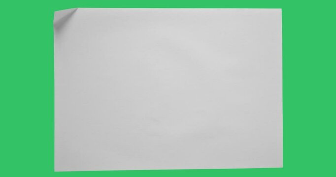 4k video on green chrome key background, paper folding or unfolding, white sheet of paper animation crumpled,