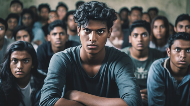 teenage girls and boys, bad mood anger and hate, upset and disappointed or arrogance or unfriendly loud behavior, teens with friends
