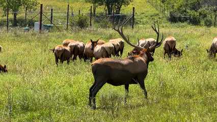 bull elk with herd