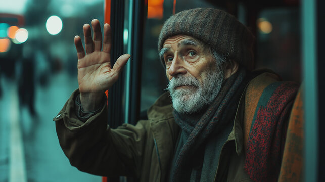 Sad woman standing alone on the seaside. Beautiful lady waving her hand to distant with feeling lonely. Time to go. Missing someone. Desire, hope to go far away. Time to say goodbye.
