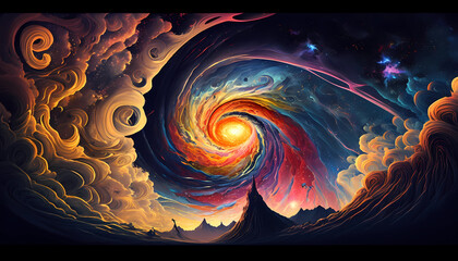 A cosmic landscape representing a star-forming region.. digital art illustration. generative AI.