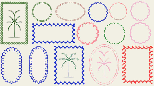 Vibrant tropical frames and palm trees offer playful, organic design elements for any project