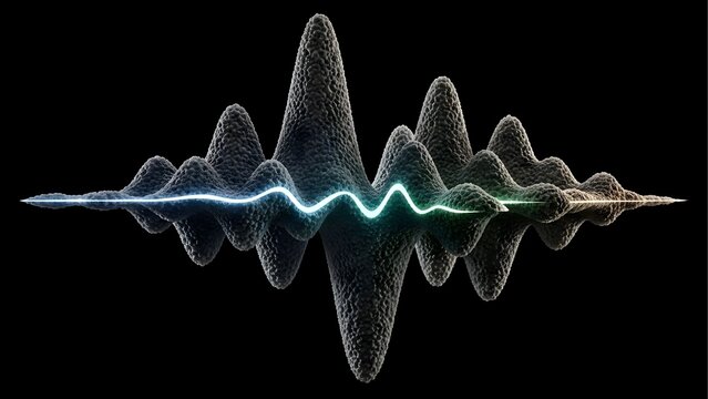 Abstract 3D Sound Wave with a Rocky Texture and a Central Glowing Line on a Black Background