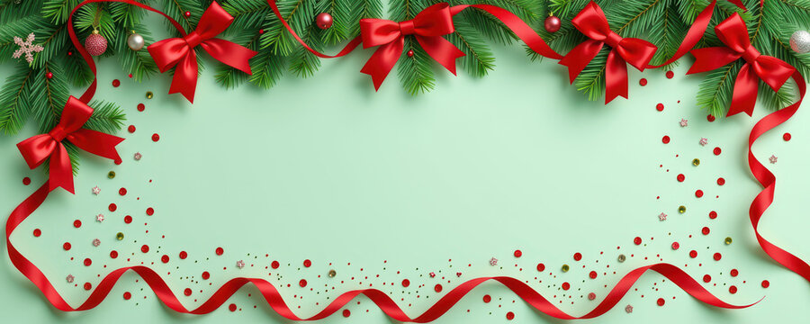 Stylish christmas decoration with pine and ribbons for new year's gift seasonal ornament display in festive environment