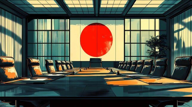 Classic Japan flag design, featuring a bold red sun on a white canvas, universally recognized in sports, politics, and heritage projects, comic book art style