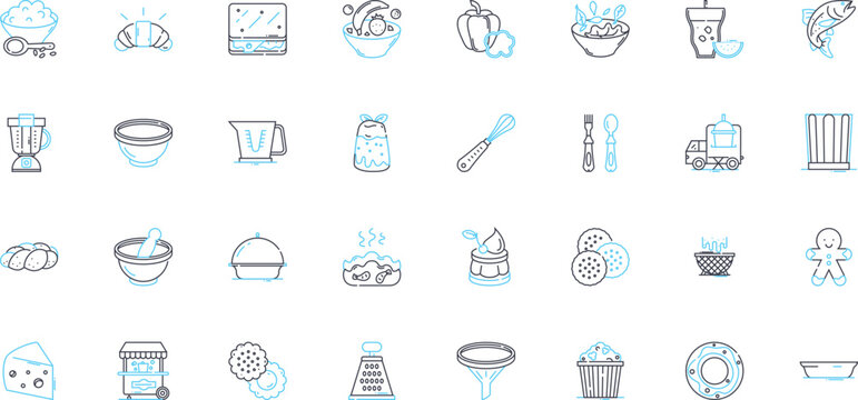 All-you-can-eat restaurant linear icons set. Buffet, Unlimited, Feast, Gluttony, Overindulgence, Variety, Selection line vector and concept signs. Abundance,Gourmet,Cuisine outline illustrations