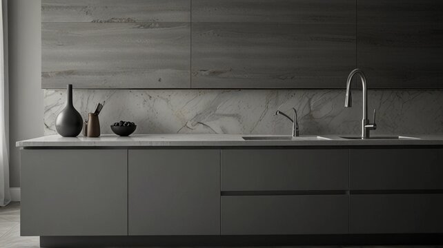 kitchen counter in gray and white tones, close-up, without unnecessary details with space for an inscription.