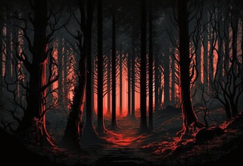 An AI-Generated Render of a Dark, Gloomy, and Frightening Forest: A Spectral and Unearthly Apparition