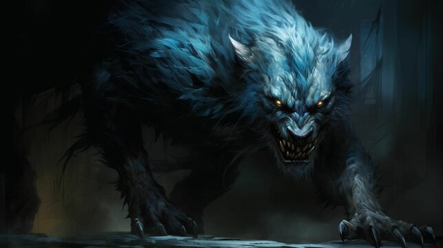 AI generated illustration of a frightening, unnerving creature stands in the dark