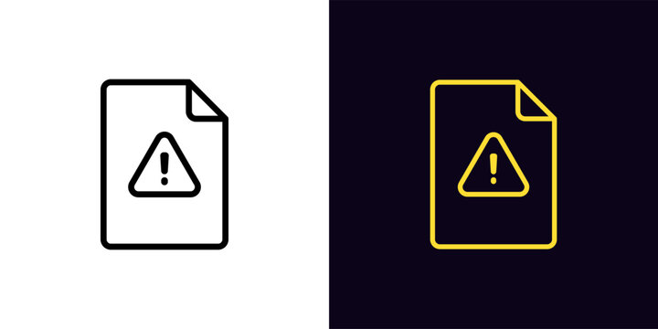 Outline file damage icon, with editable stroke. Document with exclamation mark, danger data. Damaged document, unreliable agreement, unsafe file, problem and error warning, risk alert