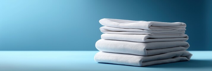 Fresh and clean: White t-shirts hanging against a clear blue sky background