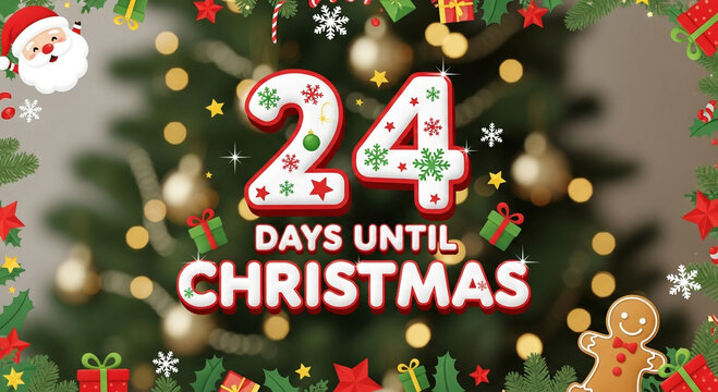 Countdown to christmas a festive reminder that there are 24 days left until the joyous holiday, surrounded by ornaments and holiday cheer