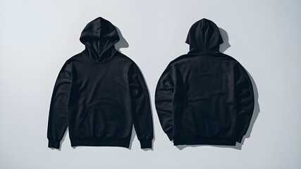 Blank hoodie mockup .Blank sweatshirt black color preview template front and back view on white background. crew neck mock up isolated on white background. Cloth collection.
