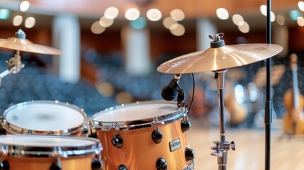 Two musicians practice playing the guitar and drums in a studio. They are preparing for their upcoming concert and working on timing.