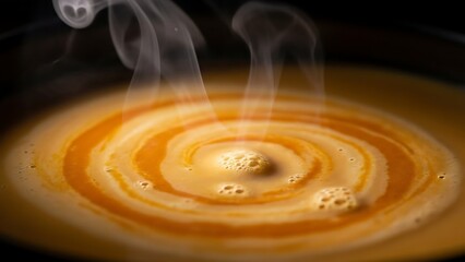 A large bowl of creamy white soup with a generous amount of cheese and a lot of steam rising from it. The steam is coming from the top of the bowl, creating a warm and inviting atmosphere