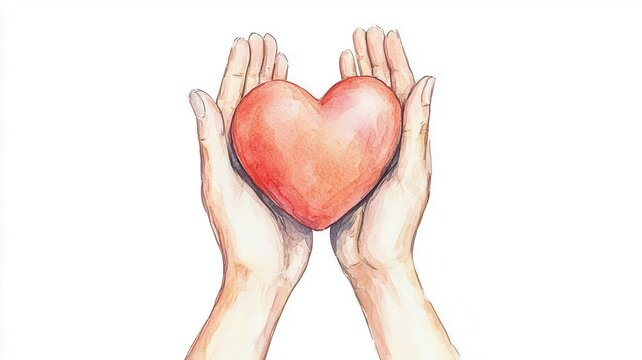 Hands lifting a heart, support and care, soft pastel colors, watercolor illustration, isolated on white background