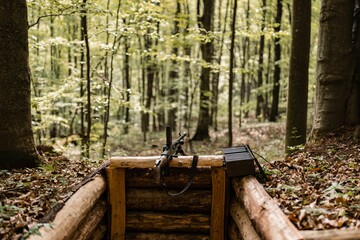 World war II guns equipment and trenches from Slovak national uprising demonstration
