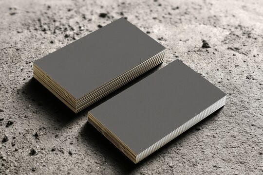 Pair of authentic business cards on an elegant dark concrete surface, Empty design for upscale stationery mockup
