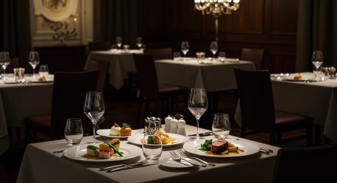 Exquisite Gourmet Creations Served in Elegant Fine Dining Setting