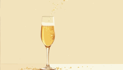 Glass of champagne with golden bokeh background