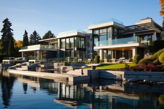 A lavish residence located in Vancouver, Canada set against a backdrop of clear blue skies.