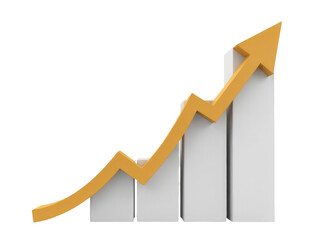 A 3D illustration of a chart with an upward-pointing arrow, representing financial growth and increase
