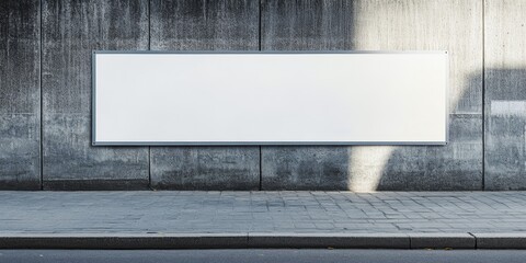 Empty long advertisement banner displayed on a cement fence in an outdoor setting. This banner represents opportunities in the construction industry and development for potential advertising.