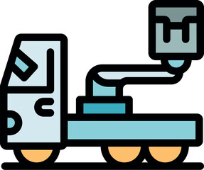 Small manipulator truck lifting heavy concrete block, working at construction site