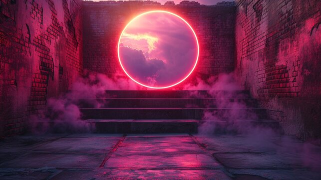 Pink Sunset Over Brick Wall: A Neon-Glowing Sculpture of a Sunset Generative AI