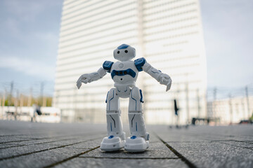 Mini robot on a square in the city