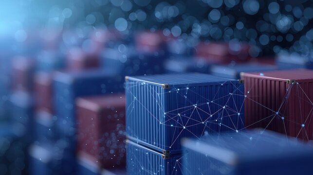 Modern Shipping Containers with Digital Network Overlay