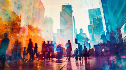A crowded city street, capturing the hustle and bustle of urban life. Generative Ai.