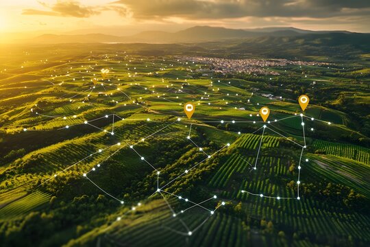 Innovative land development concept with digital network overlay—ideal for urban planning, smart cities, and infrastructure visualization