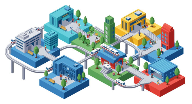 Isometric Smart City with Advanced Transportation Network.