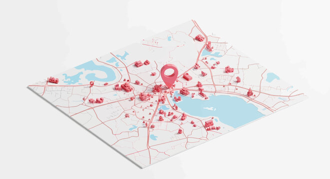 Illustration of a Landscape Design Plan with Trees, Buildings, and Roads