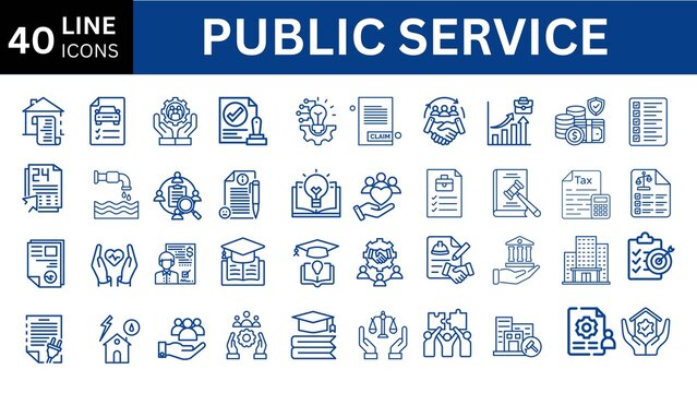 Set of outline Public Services icons. Minimalist thin linear web icon set. Line icons related to public utilities. Gas, electricity, water, heating.