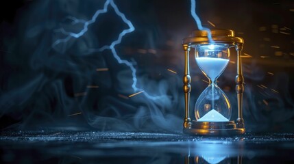 Thunder strikes against a simple hourglass, illustrating the urgency and rapid pace of decision-making in business.