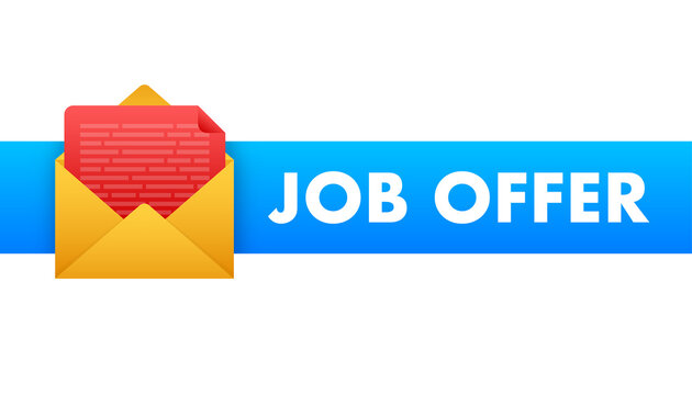 Envelope with Job offer message. Recruitment, Candidates. Work search success. Vector stock illustration