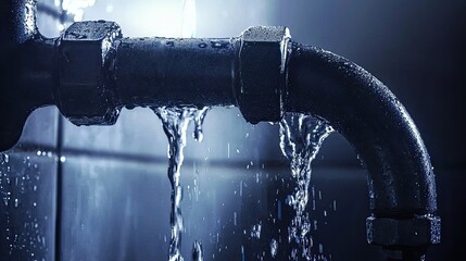 close up leaking pipe with water flowing symbolizes urgent plumbing repair needs.