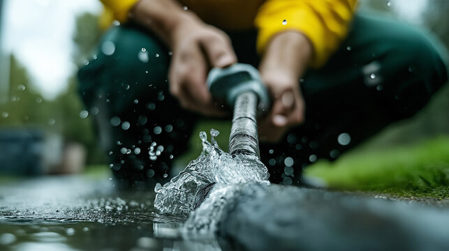 Leaking pipe with water splash symbolizes urgent plumbing issues needing immediate repair.