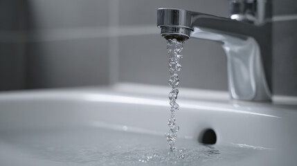 Water droplets splashing from dripping faucet into white sink basin illustrating ongoing leak and urgent repair