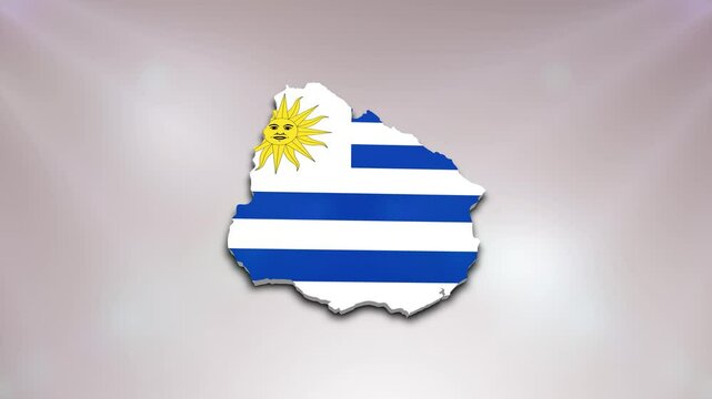 Uruguay Flag on its Country Map, 3D Map Flag Opener Suitable for Politics, Elections, Travel, News and Sports Events and Presentations