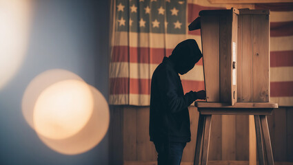 USA banner mockup with confetti stars in American national colors. USA Presidents Day, American Labor day, Memorial Day, US election concept.