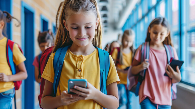 Group of people using different gadgets near light grey wall indoors. Modern technology