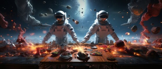 Friendly grocery shop staff displaying fresh produce for local market promotion