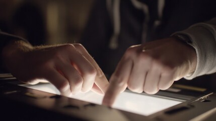 A laptop with a white screen showing as a person types, emphasizing the connection between technology activation and user engagement in a digital environment.
